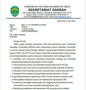 IDENESIA.CO – Ribuan peserta jaminan kesehatan di Kalimantan Timur terancam berpindah tanggung jawab pembiayaan ke pemerintah kabupaten/kota, seiring rencana redistribusi segmen Pekerja Bukan Penerima Upah (PBPU) dan Bukan Pekerja (BP) oleh Pemerintah Provinsi Kaltim.
